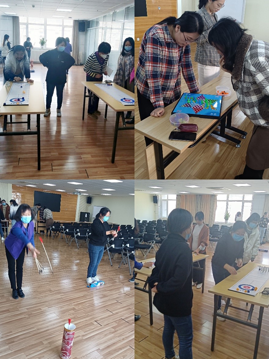 于3月8日在310A会议室举办“美丽巾帼展风采”趣味竞技赛活动。活动分别开展了“趣味投壶赛”、“桌上冰壶赛”、“桌上保龄球赛”、“趣味跳棋赛”4项趣味赛。学院近40名女老师参加了活动。