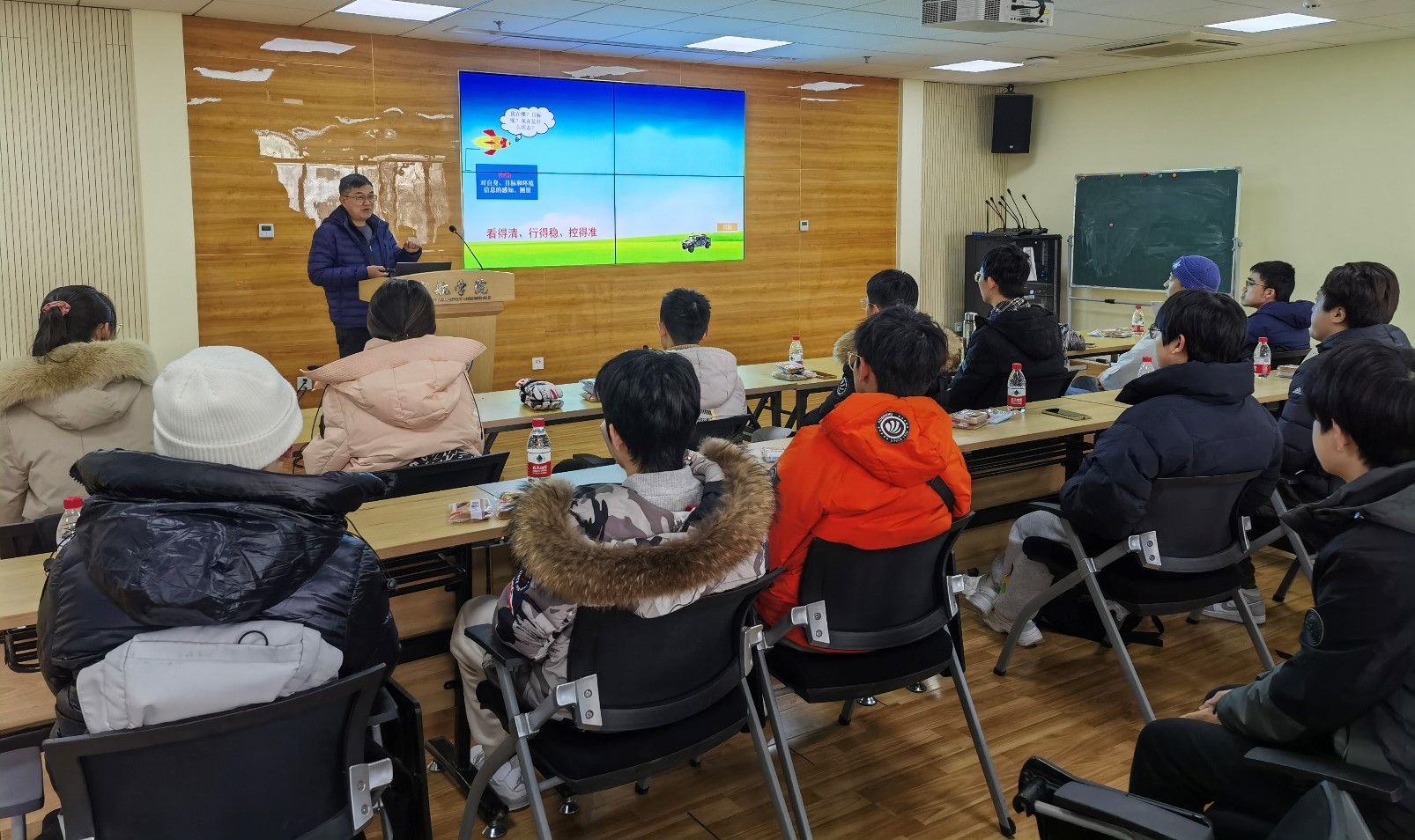 飞行器控制系党支部与01712101班(2021级探测制导与控制技术专业班)在中关村校区举行了师生交流活动。飞行器控制系主任宋晓东等17位教师、01712101班全体同学以及8位高年级同学参加了交流活动。活动由系党支部组织委员、班主任李传军主持。