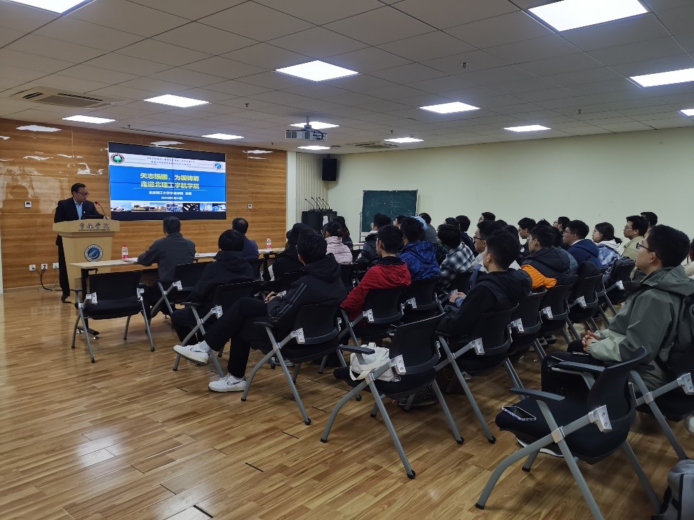 林德福教授向同学们详细介绍了智能飞行器技术的发展前景,并介绍了航空宇航与智能飞行器技术英才班“产学研用赛”的教育理念。他介绍,在专业团队的带领下,英才班的同学们将有机会参加国际赛事,代表国家出征,展现中国青年的才华和实力。这不仅是对学生们学术水平和实践能力的一次检验,也是对他们团队协作精神和国际视野的一次锻炼。