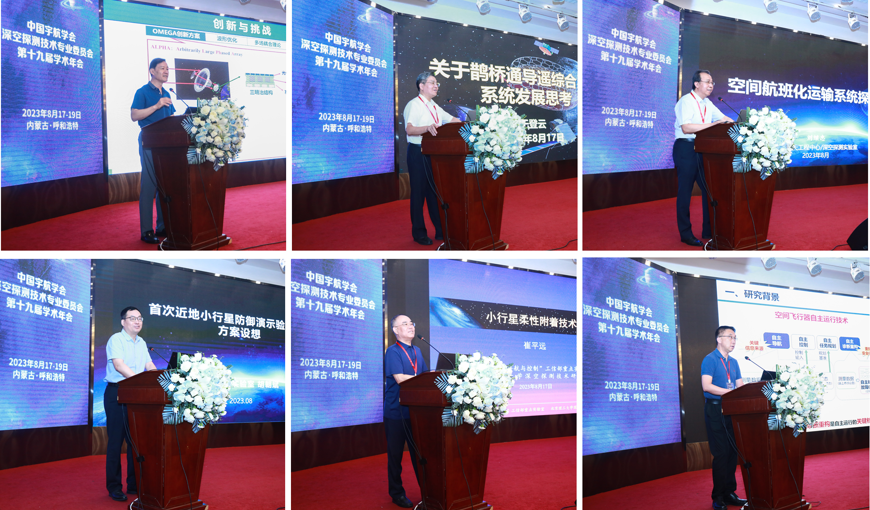 崔平远教授、北京空间飞行器总体设计部王大轶研究员等分别就空间能源网与空间太阳能电站、鹊桥通导遥综合系统、空间航班化运输系统、近地小行星防御演示验证任务方案、小行星柔性附着技术、深空探测器自主导航与诊断重构等方面做大会报告。