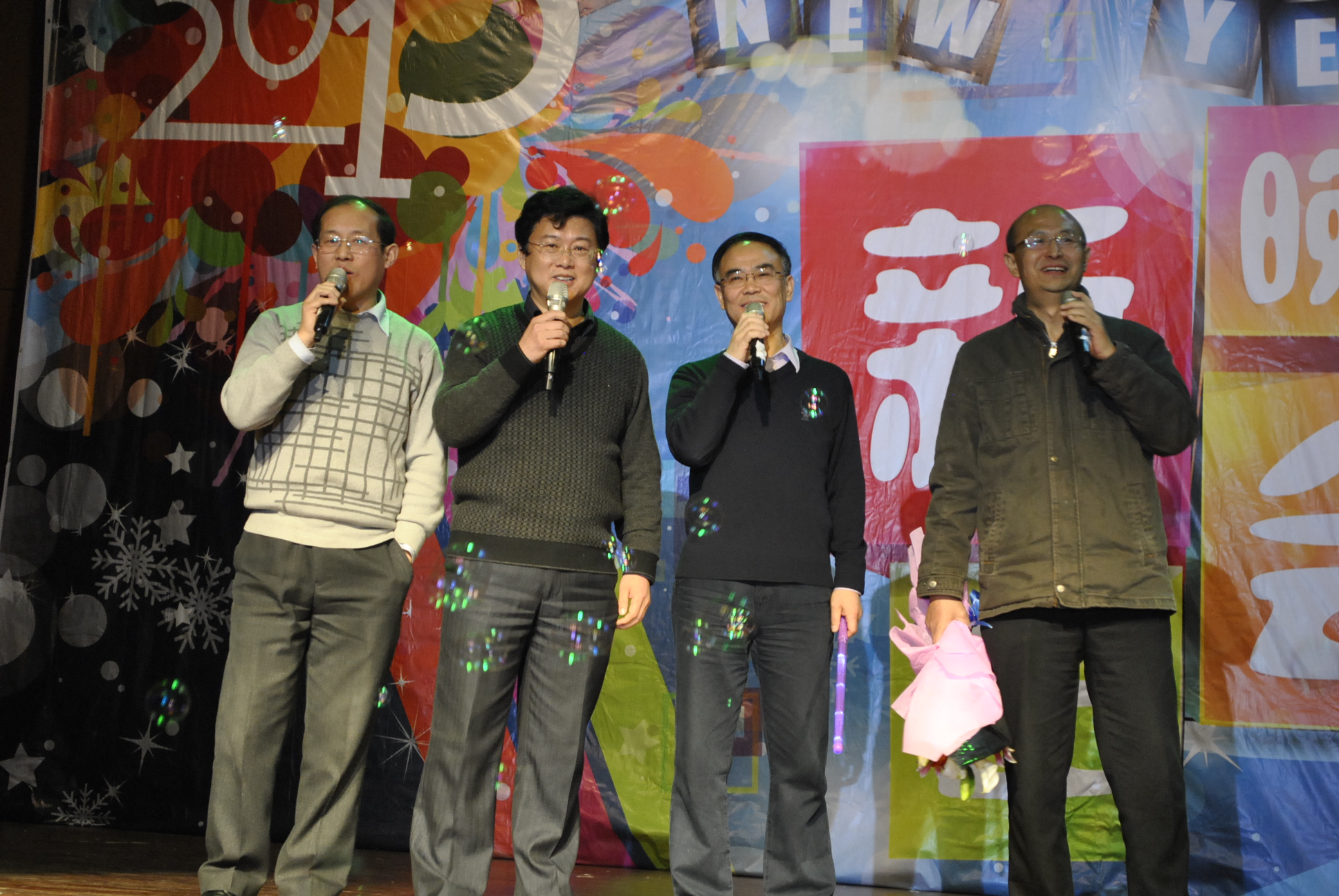 四位院长登台献唱,从智取威虎山到呼伦贝尔大草原,从有一个美丽的传说到三十里铺,平时看似严肃的院长们瞬时与同学们亲近了不少。院长们合唱的《小苹果》将整个晚会推向了高潮。