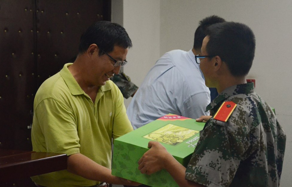 接下来,胡更开与其他院领导一起为同学们送上了中秋礼盒以及满满的祝福。院领导们亲切地与同学们握手,详细询问军训期间的生活情况。小小的盒子里,不仅仅是月饼、水果这类节日礼物,更是传递着age动漫