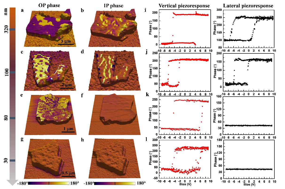 图1 不同厚度CIPS薄片的铁电畴和局部电极化翻转