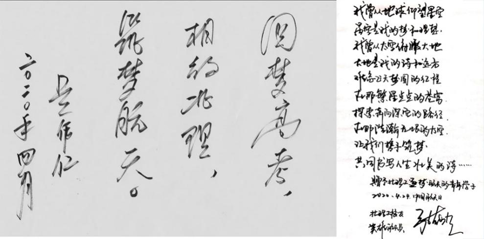 工程博士张晓光将军亲笔写下对北理工学子的祝愿,“携手筑梦,共谱诗篇”。