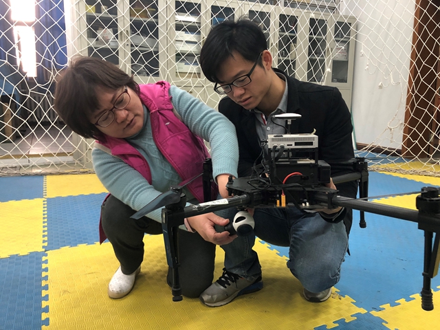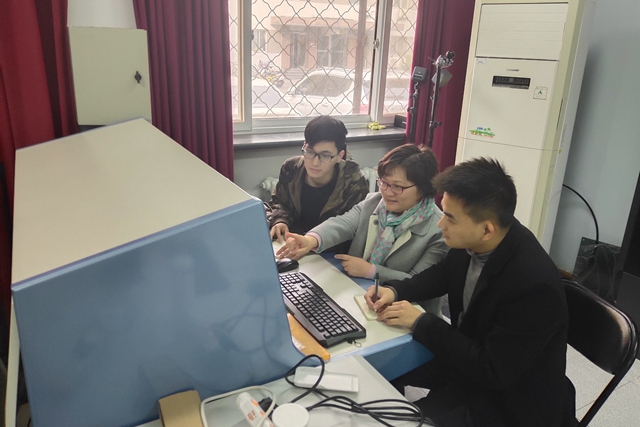 丁艳与学生一起调试设备