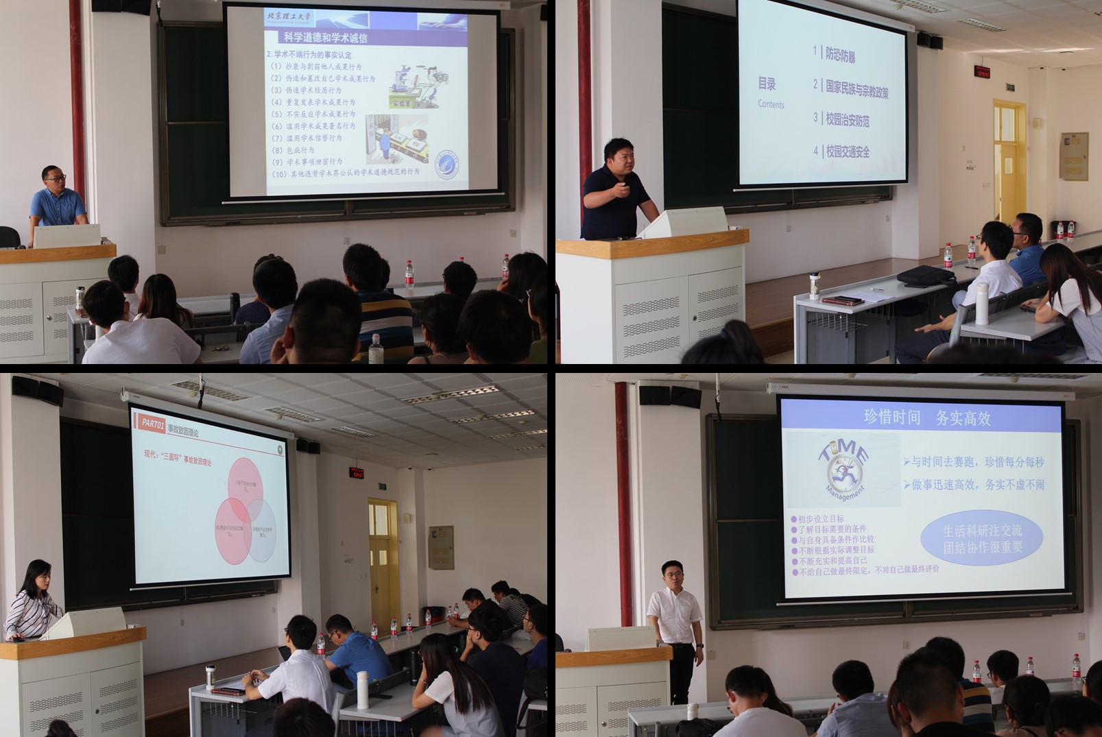龙腾从研究生培养、科学道德、学风建设等方面作研究生培养专题教育。刘恒贝作了校园安全、民族与宗教专题教育。姚朋君作了实验室安全专题教育。研究生辅导员尹兆钰主持召开了第一次年级大会。