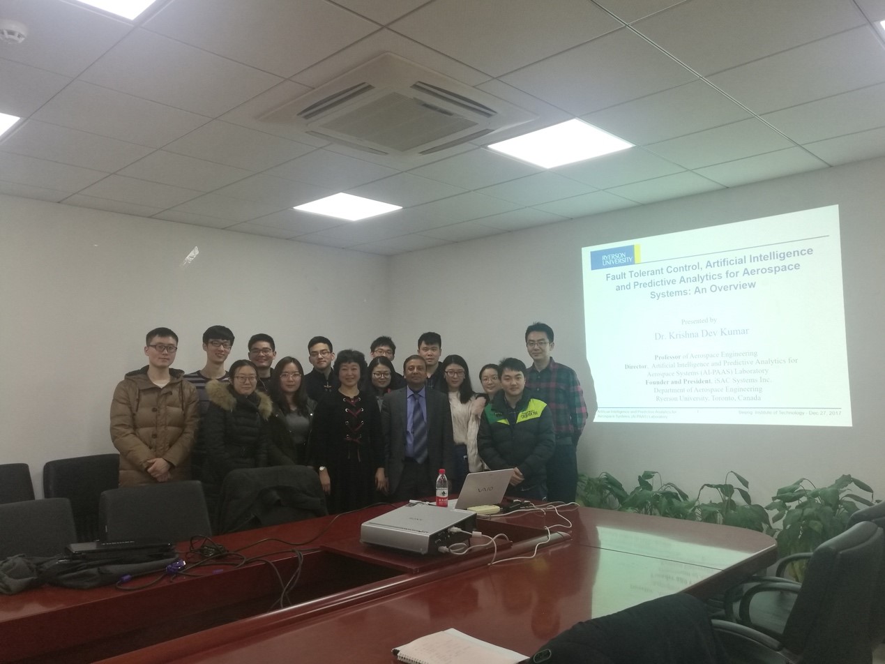 张景瑞教授的邀请,加拿大瑞尔森大学航天工程系Krishna D. Kumar教授于2017年12月17日至30日期间在我院进行学术访问与交流,并于27日上午在宇航楼519会议室作题为“Fault Tolerant Control, Artificial Intelligence and Predictive Analytics for Aerospace Systems: An Overview”的学术交流报告。