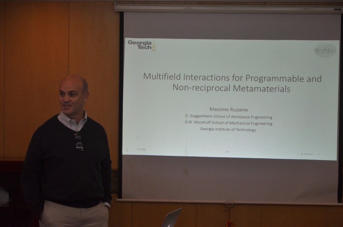 其中M.Ruzzene教授与学院力学系细观力学实验室(www.micromechanics.cn)的老师和学生进行了为期两天的学术交流。