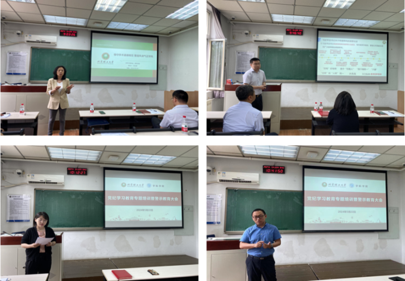 学院党委书记、常务副院长龙腾作总结讲话,他指出党纪学习教育是加强党的纪律建设、推动全面从严治党向纵深发展的重要举措; 他强调结合教学科研具体工作开展党纪学习教育,要聚焦解决一些我们教师对具体工作业务、党规党纪不了解、不掌握和关心不到位的问题,教育引导党员干部与全体师生学纪、知纪、明纪、守纪; 他要求各教工党支部、科教团队会后要组织本支部、本团队师生,围绕本次学院专题培训内容和警示教育大会通报的典型案例开展学习研讨,要做到师生教育全覆盖,要将党纪学习教育成果转化为日常习惯和自觉遵循,转化为推进学院事业高质量发展的工作动力和具体行动,为加快推进学校“双一流”提供坚强保证。
