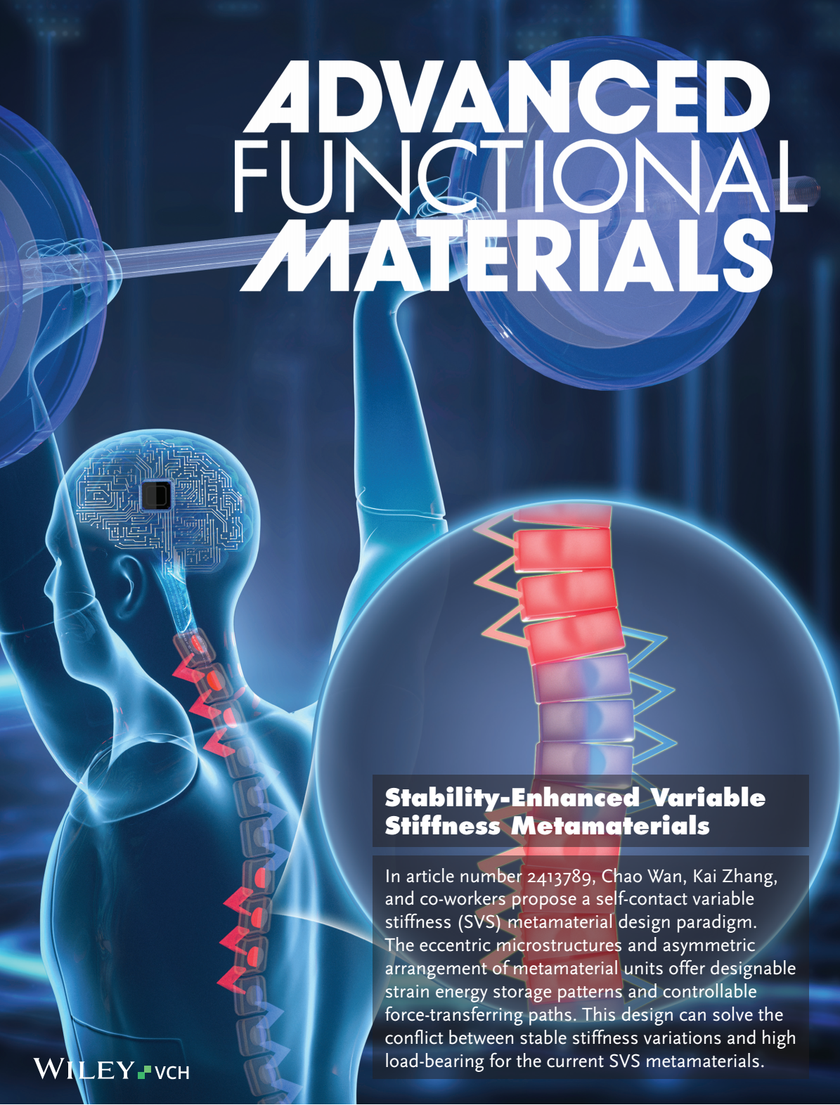 软物质力学团队在力学超材料方面取得重要进展,相关研究成果以“Stability-Enhanced Variable Stiffness Metamaterial with Controllable Force-Transferring Path”为题发表在国际顶级期刊《Advanced Functional Materials》,并被选为当期卷首论文(Frontispiece),如图1所示。age动漫